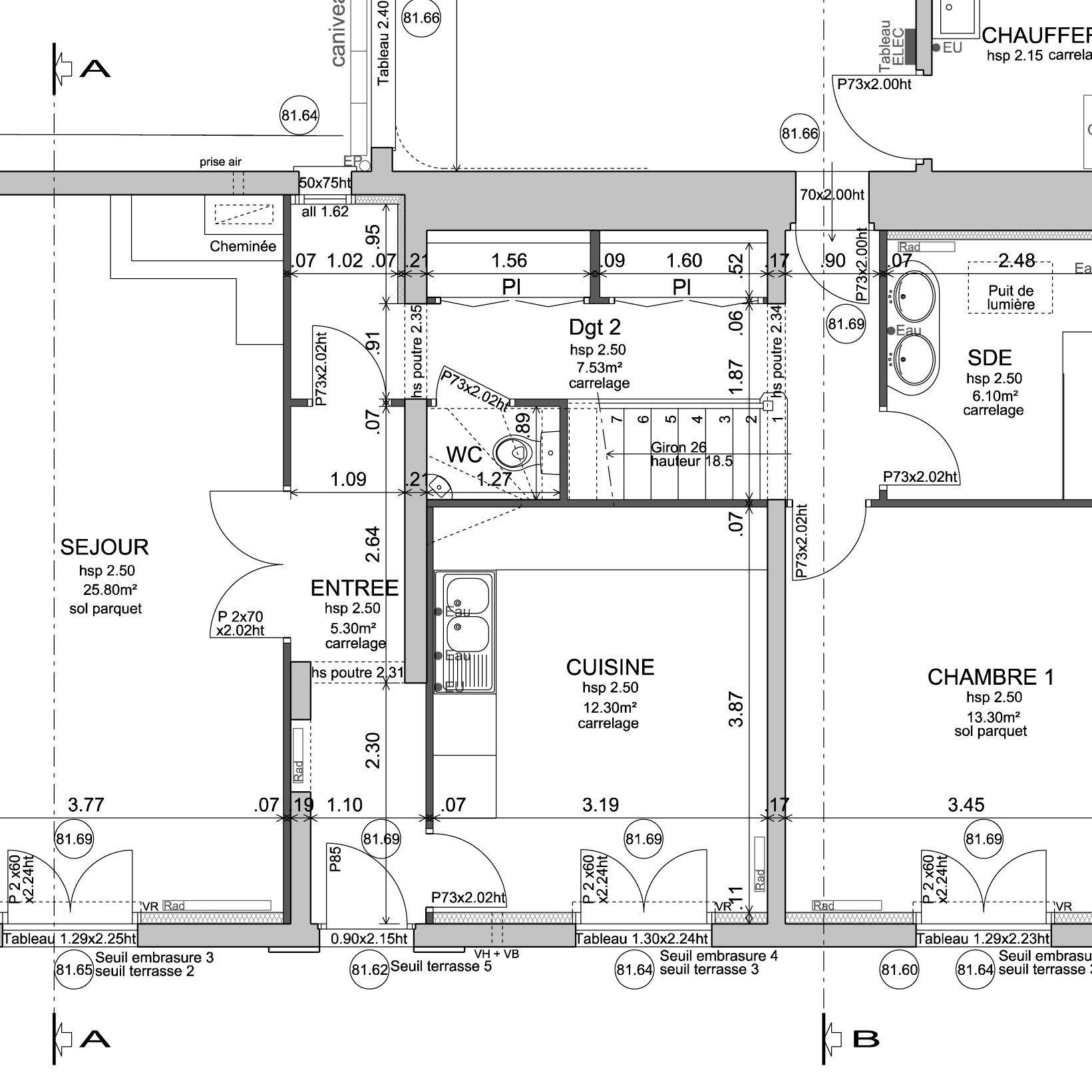 - un plan de coupe à l’échelle 1/50ème (avec cotations de niveau)