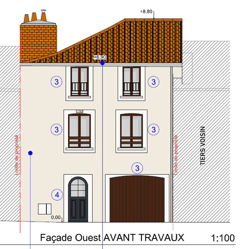 - un plan des façades 2D à l’échelle 1/100ème