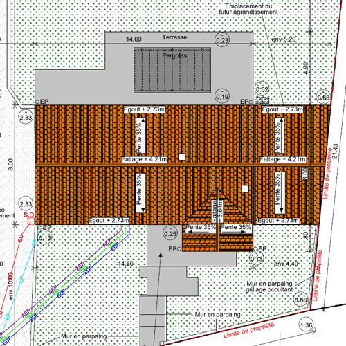 - DP3 : un plan de coupe du terrain et de la construction